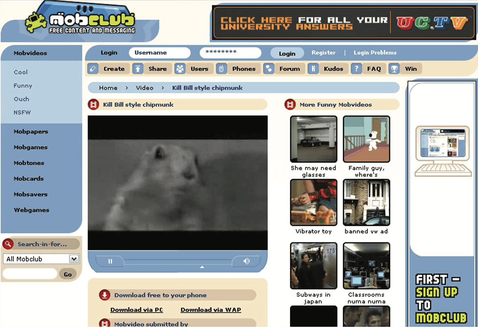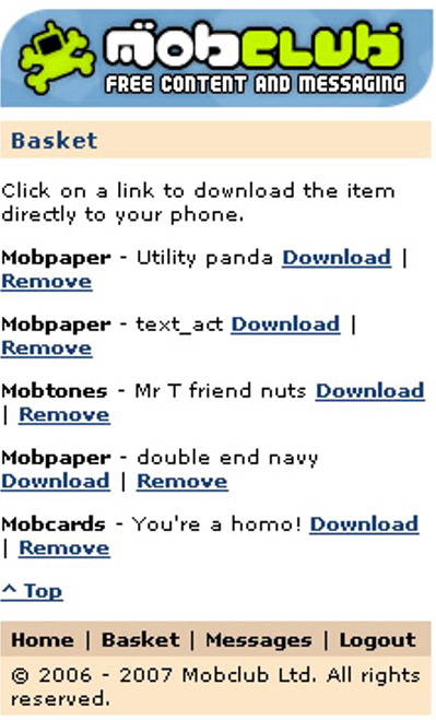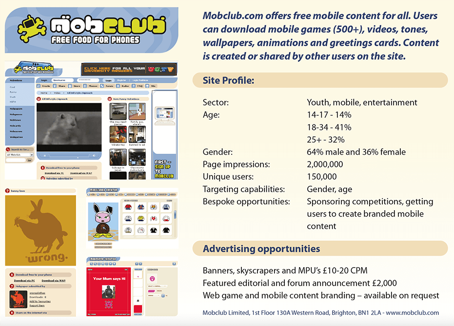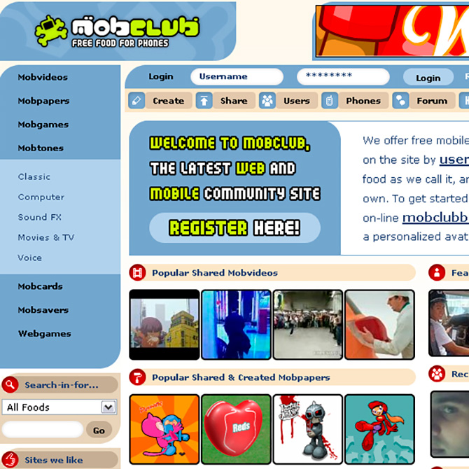 Rather than competing in a tough market that required separate deals with mobile operators for reverse billing, we shifted gears. We transformed mobclub into a web-based platform where users could create, upload, and share free mobile content. The community-driven site became a hub for wallpapers, ringtones, and mobile content—all without the annoyance of Crazy Frog